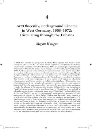 Art/Obscenity/Underground Cinema in West Germany, 1968–1973: Circulating Through the Debates